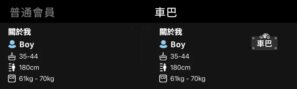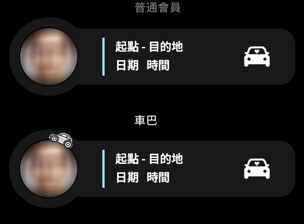 在您的個人檔案中會顯示專屬的等級標籤 顯示您的 車巴身份,提高配對成功機率